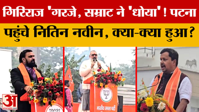 Hindi News ›   Video ›   Bihar ›   Patna News ›   Giriraj roared, Samrat Chaudhary 'washed' the opposition! Nitin Nabin arrived in Patna, what happened?