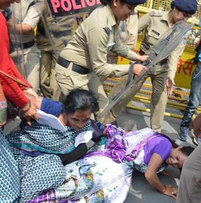 आंगनबाड़ी कार्यकर्ताओं के साथ आई कांग्रेस और समाजवादी पार्टी