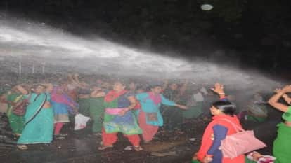राज्य कर्मचारियों का दर्जा मांग रही आंगनबाड़ी कार्यकर्ताओं ने सोमवार को हजरतगंज चौरोह पर जमकर प्रदर्शन किया। पुलिस ने महिलाओं को हटाने के वाटर कैनन की बौछार भी की लेकिन महिलाएं धरने प्रदर्शन पर डटी रहीं।