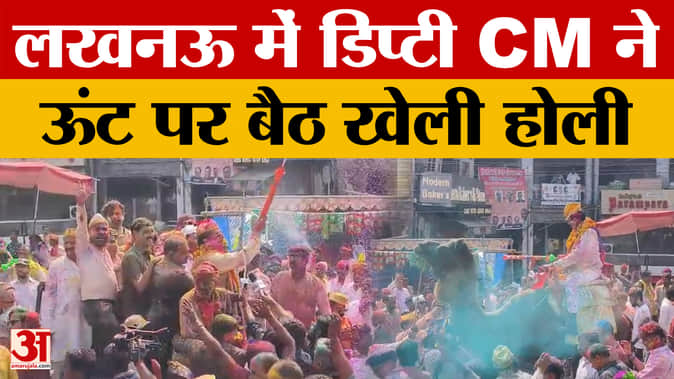 Lucknow: Deputy CM Brajesh Pathak ने लखनऊ में ऊंट पर सवार होकर खेली, देखें वीडियो।