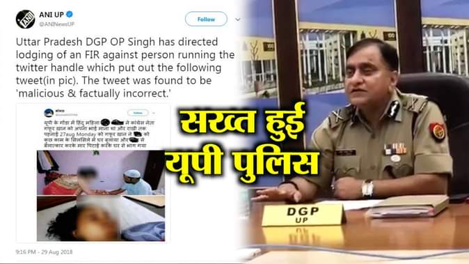 रक्षाबंधन के बाद ट्विटर पर वायरल हो रही घृणा फैलाने वाली एक फर्जी तस्वीर पर यूपी के डीजीपी ने सख्त ऐक्शन लिया है। इस ट्वीट के जरिए हिन्दू-मुस्लिम समुदाय को भड़काने की कोशिश की गई थी।