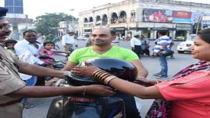 यूपी पुलिस ने लखनऊ में करवा चौथ के दिन फ्री में हेलमेट बांटे। पुलिस ने साथ ही अपील की लोग हेलमेट पहने लेकिन पुलिस के इस अभियान के दौरान शर्मनाक तस्वीरें सामने आई। कई लोग हेलमेट लूटने पर उतारू हो गए।