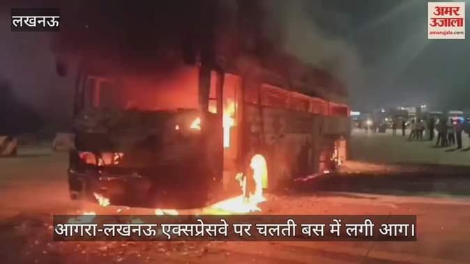 आगरा-लखनऊ एक्सप्रेसवे पर चलती बस में लगी आग, किसी तरह यात्रियों को निकाला गया बाहर