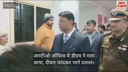 यूपी की राजधानी लखनऊ में दलालों की धरपकड़ के लिए मंगलवार को जिलाधिकारी सूर्यपाल गंगवार ने पुलिस के साथ ट्रांसपोर्ट नगर स्थित क्षेत्रीय परिवहन कार्यालय (आरटीओ) में छापा मारा। भारी पुलिस के साथ अचानक हुई छापेमारी से वहां पर हड़कंप मच गया। पकड़े जाने के डर से कई दलाल दीवार फांदकर भाग गए। इस दौरान कुछ लोग पकड़े भी गए लेकिन पूछताछ के बाद उनको छोड़ दिया गया। छापे में डीएम के साथ संयुक्त पुलिस आयुक्त कानून व्यवस्था अमित वर्मा भी थे।