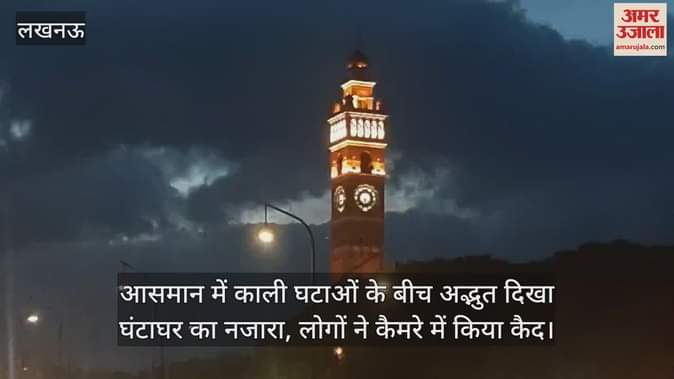 आसमान में काली घटाओं के बीच अद्भुत दिखा घंटाघर का नजारा, लोगों ने कैमरे में किया कैद