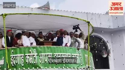 ऐशबाग ईदगाह : नमाज के बाद लोगों का अभिवादन स्वीकार करते मौलाना खालिद रशीद फरंगी महली