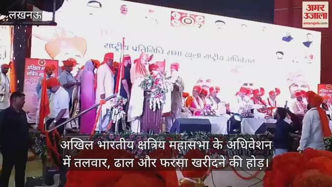 राजधानी लखनऊ में रविवार को गोमती नगर स्थित इंदिरा गांधी प्रतिष्ठान में अखिल भारतीय क्षत्रिय महासभा के 128वें अधिवेशन का आयोजन किया गया। इसमें सभी प्रदेशों के पदाधिकारी व बड़ी संख्या में कार्यकर्ता पहुंचे। इस दौरान उनमें तलवार, ढाल और फरसा समेत अन्य शस्त्र खरीदने की होड़ दिखी।