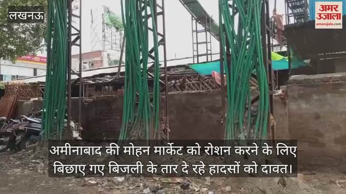अमीनाबाद की मोहन मार्केट को रोशन करने के लिए बिछाए गए बिजली के तार दे रहे हादसों को दावत