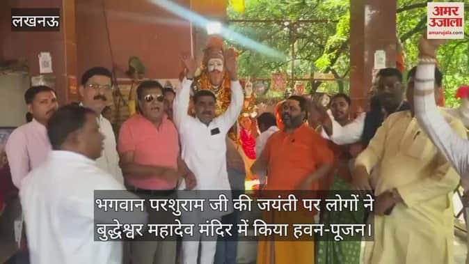 राजधानी लखनऊ में बुधवार को भगवान परशुराम जी की जयंती धूमधाम से मनाई गई। इस अवसर पर बुद्धेश्वर महादेव मंदिर परिसर में स्थित भगवान परशुराम मंदिर में लोगों ने हवन पूजन किया।