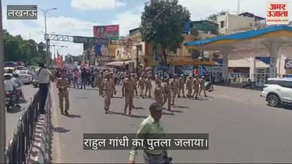 राजधानी लखनऊ में भाजपा ओबीसी मोर्चा के प्रदेश अध्यक्ष और योगी सरकार के मंत्री नरेंद्र कश्यप के नेतृत्व में भाजपा ओबीसी मोर्चा के पदाधिकारी व कार्यकर्ताओं ने हजरतगंज में कांग्रेस नेता राहुल गांधी का पुतला फूंका और उनका दिल्ली स्थित आवास घेरने की चेतावनी दी।