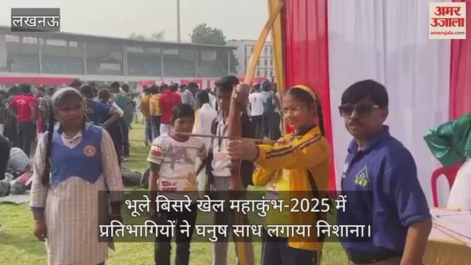 भूले बिसरे खेल महाकुंभ-2025 में प्रतिभागियों ने घनुष साध लगाया निशाना