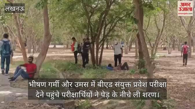 भीषण गर्मी और उमस में बीएड संयुक्त प्रवेश परीक्षा देने पहुंचे परीक्षार्थियों ने पेड़ के नीचे ली शरण