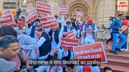 बजट सत्र से पहले विधानसभा में सपा विधायकों का प्रदर्शन... की नारेबाजी, कांग्रेस का समर्थन