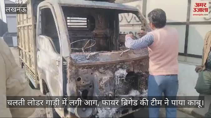 VIDEO : चलती लोडर गाड़ी में लगी आग, फायर ब्रिगेड की टीम ने पाया काबू