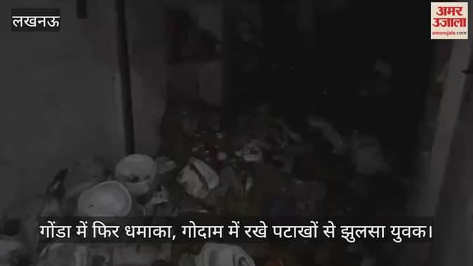 VIDEO : गोंडा में फिर धमाका, गोदाम में रखे पटाखों से झुलसा युवक