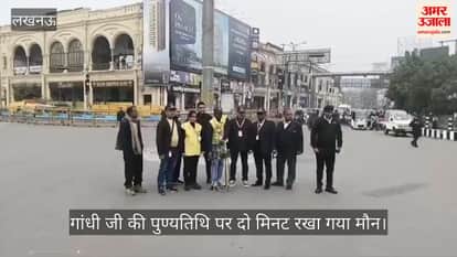 गांधी जी की पुण्यतिथि पर लखनऊ के हजरतगंज चौराहे पर सायरन बजाकर दो मिनट रखा मौन, रोका गया ट्रैफिक