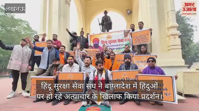 बांग्लादेश में हिंदुओं पर हो रहे अत्याचार के खिलाफ हिंदू सुरक्षा सेवा संघ ने लखनऊ में प्रदर्शन किया। हजरतगंज स्थित गांधी प्रतिमा पर बांग्लादेश के पीएम के मुर्दाबाद के नारे लगाए।