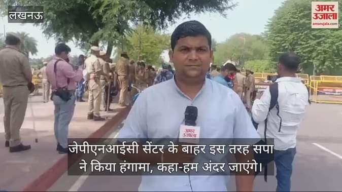 VIDEO : जेपीएनआईसी सेंटर के बाहर इस तरह सपा ने किया हंगामा, कहा-हम अंदर जाएंगे