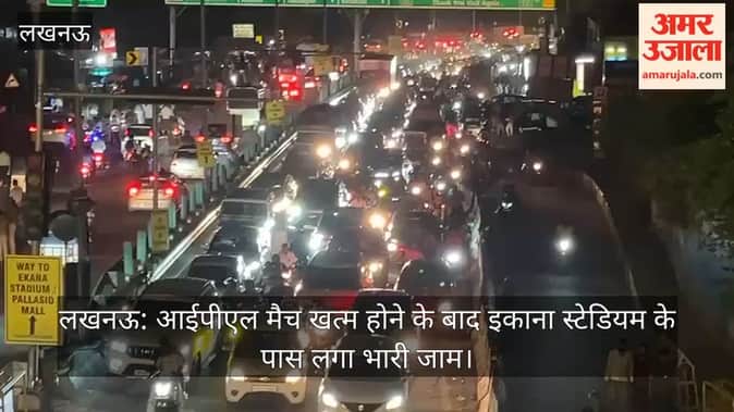 लखनऊ: आईपीएल मैच खत्म होने के बाद इकाना स्टेडियम के पास लगा भारी जाम