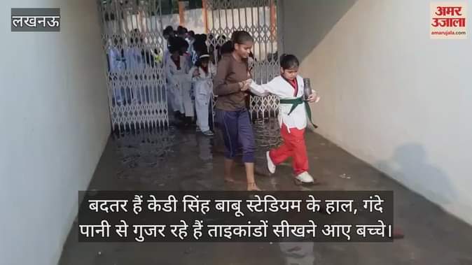लखनऊ: बदतर हैं केडी सिंह बाबू स्टेडियम के हाल, गंदे पानी से गुजर रहे हैं ताइकांडों सीखने आए बच्चे