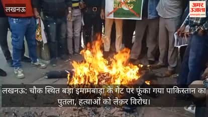 लखनऊ: चौक स्थित बड़ा इमामबाड़ा के गेट पर फूंका गया पाकिस्तान का पुतला, हत्याओं को लेकर विरोध