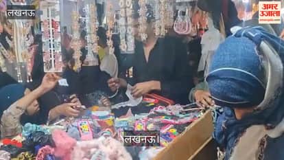 लखनऊ: चांद रात पर नक्खास बाजार में खरीदारी के लिए भीड़, लगा जाम