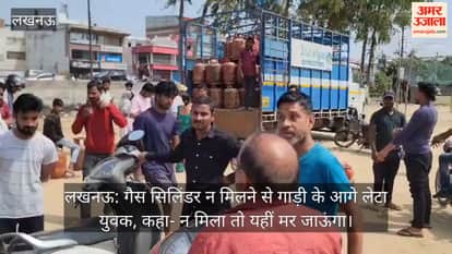 लखनऊ: गैस सिलिंडर न मिलने से गाड़ी के आगे लेटा युवक, कहा- न मिला तो यहीं मर जाऊंगा