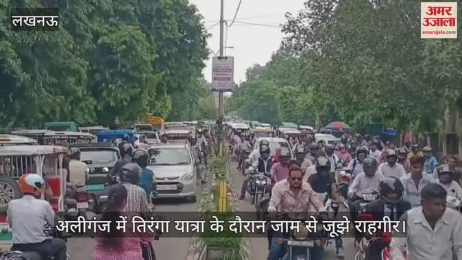 लखनऊ के अलीगंज में तिरंगा यात्रा के दौरान जाम से जूझे राहगीर