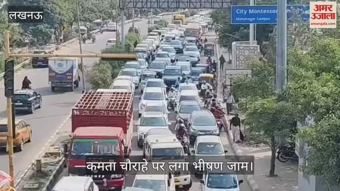 लखनऊ के फैजाबाद रोड में कमता चौराहे पर लगा भीषण जाम