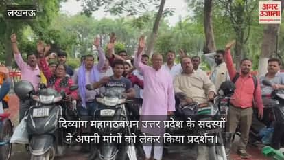 लखनऊ के जीपीओ पार्क में दिव्यांग महागठबंधन उत्तर प्रदेश के सदस्यों ने अपनी मांगों को लेकर किया प्रदर्शन
