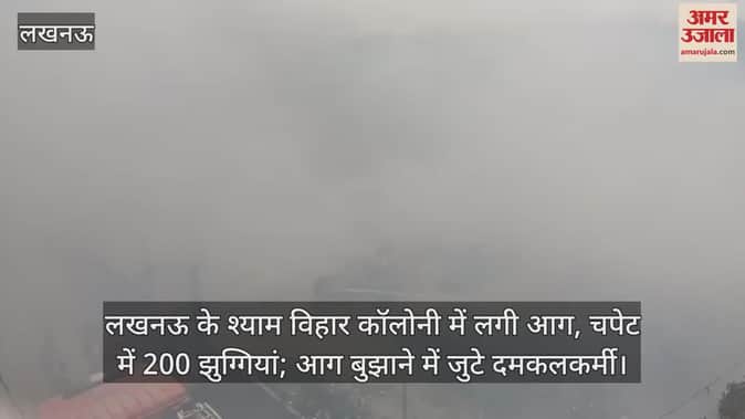 लखनऊ के श्याम विहार कॉलोनी में लगी आग, चपेट में 80 झुग्गियां; आग बुझाने में जुटे दमकलकर्मी