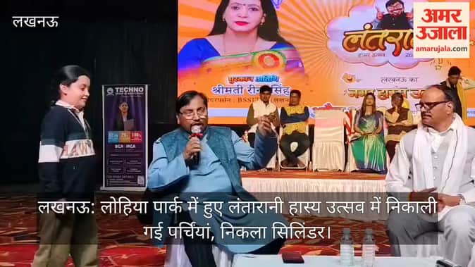 लखनऊ: लोहिया पार्क में हुए लंतारानी हास्य उत्सव में निकाली गई पर्चिंयां, निकला सिलिंडर