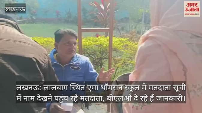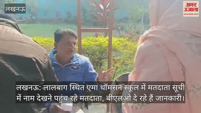 लखनऊ: लालबाग स्थित एमा थॉमसन स्कूल में मतदाता सूची में नाम देखने पहुंच रहे मतदाता, बीएलओ दे रहे हैं जानकारी