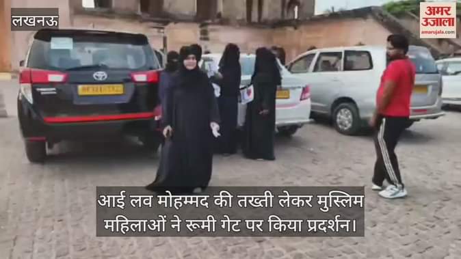 राजधानी लखनऊ में शुक्रवार को मुस्लिम महिलाओं ने आई लव मोहम्मद की तख्ती लेकर रूमी गेट पर प्रदर्शन किया। प्रदर्शनकारी महिलाओं ने मांग की है कि कानपुर में दर्ज की गई FIR वापस हो।