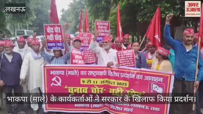 राजधानी लखनऊ में सोमवार को भाकपा (माले) के कार्यकर्ताओं ने सरकार के खिलाफ प्रदर्शन किया। कार्यकर्ताओं ने परिवर्तन चौक चौराहे से डीएम कार्यालय तक पैदल मार्च निकाला। इस दौरान जमकर नारेबाजी की।