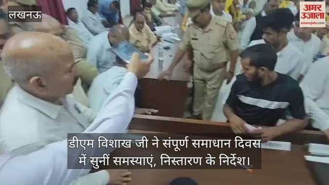 राजधानी लखनऊ में शनिवार को तहसील सभागार में संपूर्ण समाधान दिवस का आयोजन किया गया। इसमें डीएम विशाख जी ने शिकायतें सुनीं। संबंधित को उनके निस्तारण के निर्देश दिए। इस दौरान एक फरियादी महिला जमीन की शिकायत लेकर पहुंची। वह अपनी समस्या बताते हुए बेहोश होकर गिर गई। उसे पानी की छींटे मारकर होश में लाया गया। इसके बाद उसे समस्या के निस्तारण का आश्वासन दिया गया।