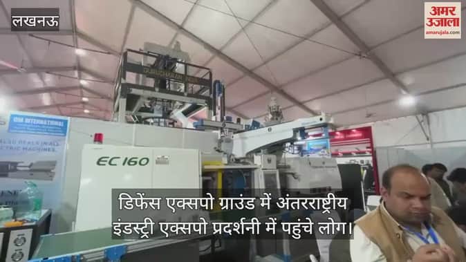 लखनऊ में डिफेंस एक्सपो ग्राउंड में अंतरराष्ट्रीय इंडस्ट्री एक्सपो प्रदर्शनी में पहुंचे लोग