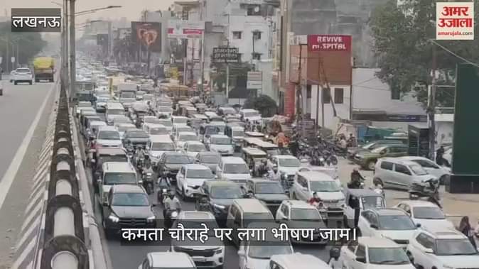 लखनऊ में फैजाबाद रोड के कमता चौराहे पर लगा भीषण जाम