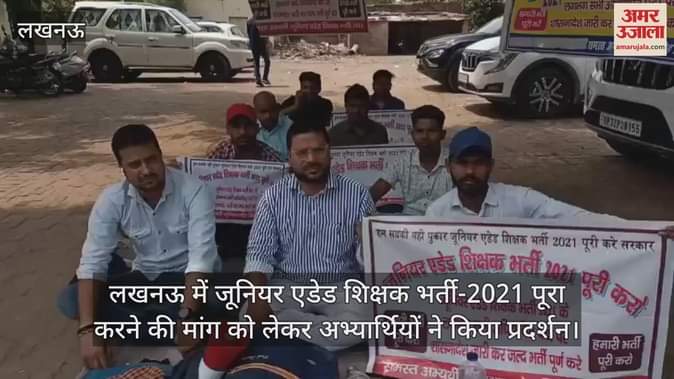 राजधानी लखनऊ में सोमवार को जूनियर एडेड शिक्षक भर्ती-2021 को पूरा करने की मांग को लेकर अभ्यार्थियों ने प्रदर्शन किया। निशातगंज स्थित शिक्षा निदेशालय पर प्रदर्शन कर रहे अभ्यर्थियों का आज दूसरा दिन है। उन्होंने कहा कि ये भर्ती पिछले चार वर्षों से लंबित है। प्रदर्शन करने वालों में आजमगढ़, प्रयागराज, जौनपुर, बिजनौर, बाराबंकी, मुरादाबाद और गोरखपुर सहित विभिन्न जिलों के अभ्यर्थी शामिल रहे।