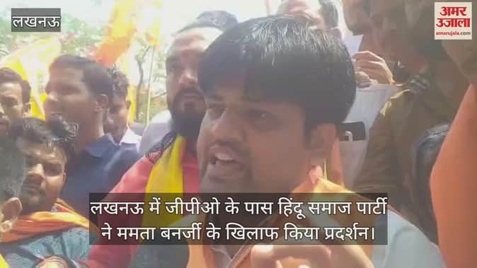 लखनऊ में जीपीओ के पास हिंदू समाज पार्टी ने ममता बनर्जी के खिलाफ किया प्रदर्शन