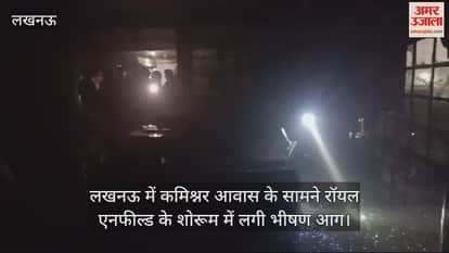 VIDEO : लखनऊ में कमिश्नर आवास के सामने रॉयल एनफील्ड के शोरूम में लगी भीषण आग