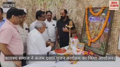 राजधानी लखनऊ में शनिवार को इंदिरा नगर स्थित एक होटल में कायस्थ समाज, उत्तर प्रदेश की ओर से कलम दवात पूजन कार्यक्रम का आयोजन किया गया। इसमें पहले भगवान चित्रगुप्त की आरती की गई। कायस्थ्य समाज के प्रदेश अध्यक्ष शेखर कुमार ने कार्यक्रम के बारे में जानकारी दी।