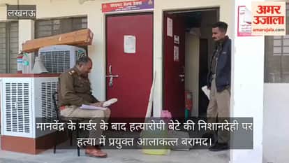 लखनऊ में मानवेंद्र के मर्डर के बाद हत्यारोपी बेटे की निशानदेही पर हत्या में प्रयुक्त आलाकत्ल बरामद