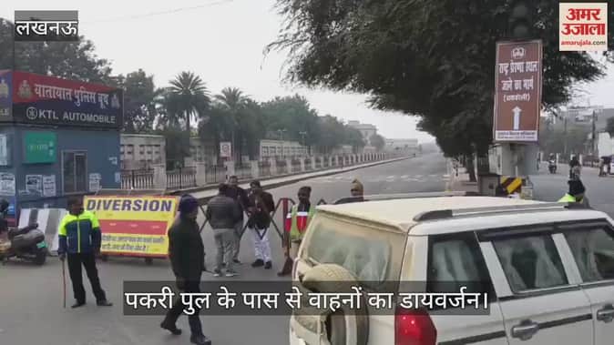 लखनऊ में पकरी पुल के पास से वाहनों का डायवर्जन, जाम की स्थिति