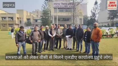 VIDEO : लखनऊ में समस्याओं को लेकर वीसी से मिलने एलडीए कार्यालय पहुंचे लोग