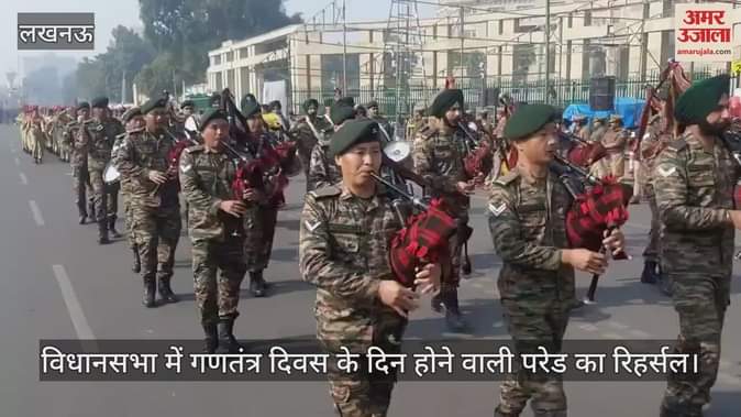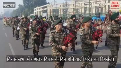 VIDEO : लखनऊ में विधानसभा में गणतंत्र दिवस के दिन होने वाली परेड का रिहर्सल