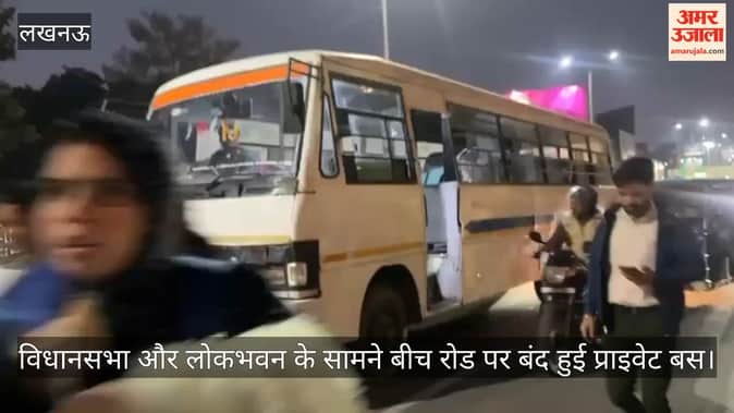 लखनऊ में विधानसभा और लोकभवन के सामने बीच रोड पर बंद हुई प्राइवेट बस, धक्का मारकर करना पड़ा किनारे