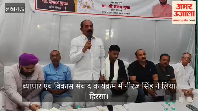 लखनऊ में अयोध्या रोड स्थित उत्तर प्रदेश आदर्श व्यापार मंडल प्रदेश कार्यालय में "व्यापार एवं विकास संवाद" कार्यक्रम में भारतीय जनता पार्टी के वरिष्ठ नेता नीरज सिंह पहुंचे। प्रदेश अध्यक्ष संजय गुप्ता ने उनका स्वागत किया।