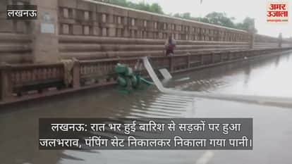 लखनऊ: रात भर हुई बारिश से सड़कों पर हुआ जलभराव, पंपिंग सेट निकालकर निकाला गया पानी