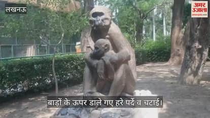 Lucknow: चिड़िया घर में तपिश व उमस से परेशान जानवर, बाड़ों के ऊपर डाले गए हरे पर्दे व चटाई